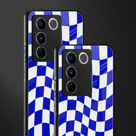 Blue White Trippy Check Pattern Phone Case for Vivo V27 Pro 5G | Glass Case