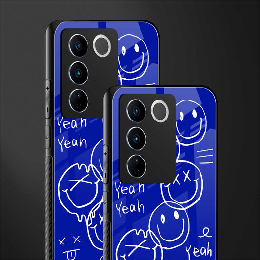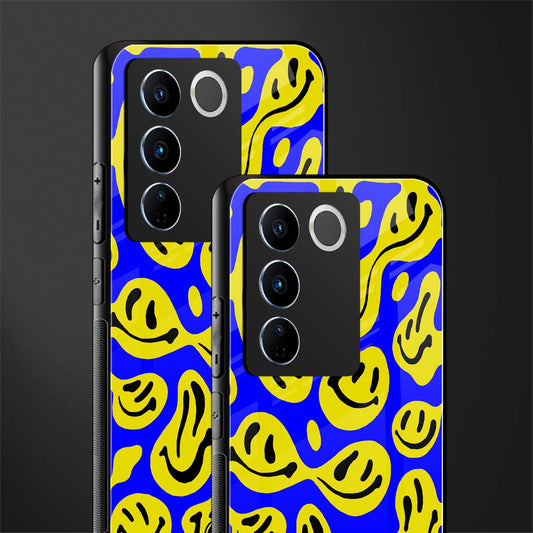 Acid Smiles Yellow Blue Phone Case for Vivo V27 Pro 5G | Glass Case