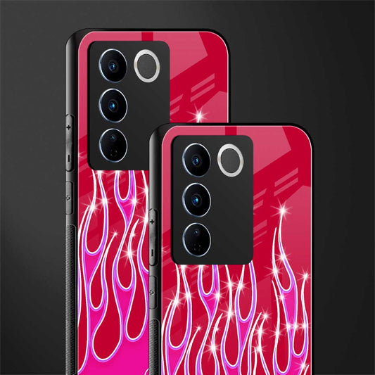 Y2k Magenta Glittery Flames Phone Case for Vivo V27 Pro 5G | Glass Case
