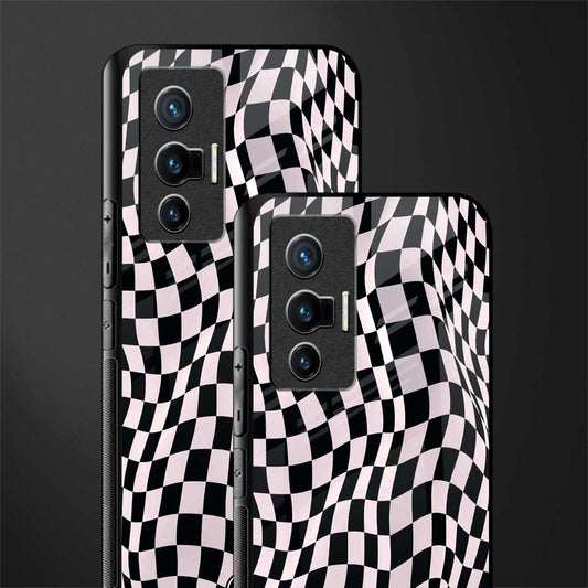 Trippy B&W Check Pattern Phone Case for Vivo X70 | Glass Case