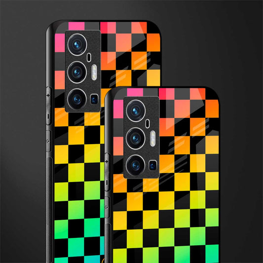 Rainbow Check Pattern Glass Case for Vivo X70 Pro Plus