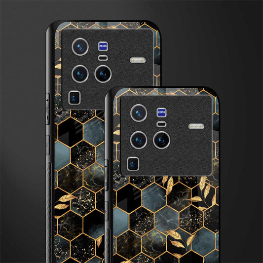 Black Blue Tile Marble Phone Case for Vivo X80 Pro 5G | Glass Case