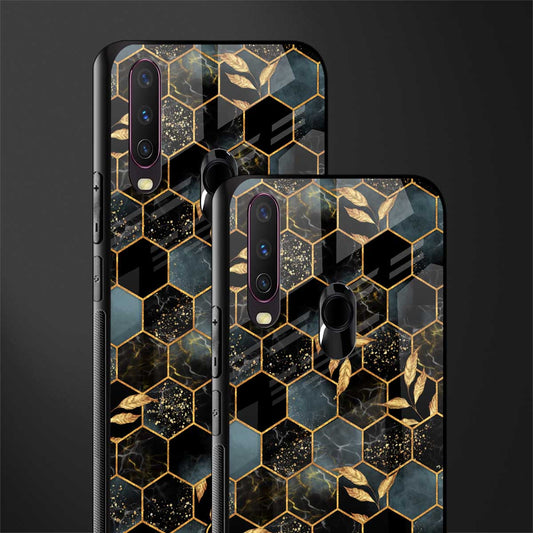 Black Blue Tile Marble Phone Case for Vivo Y12 | Glass Case