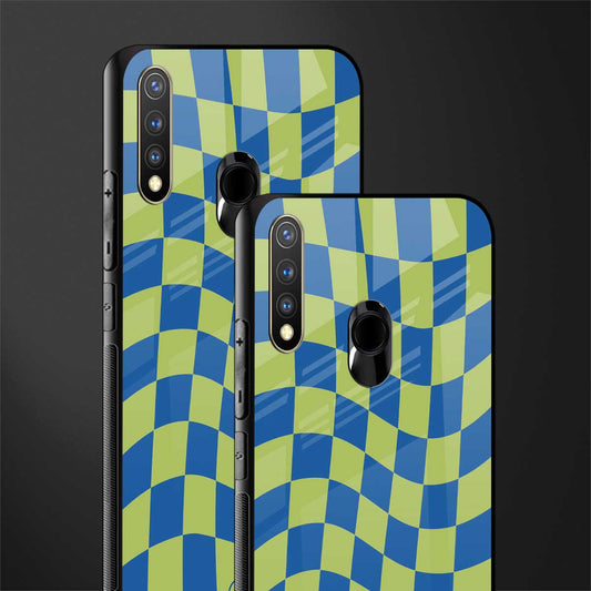 Green Blue Trippy Check Pattern Phone Case for Vivo Y19 | Glass Case