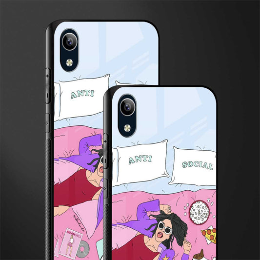 Anti Social Chick Girl Phone Case for Vivo Y1s (Without Fingerprint) | Glass Case
