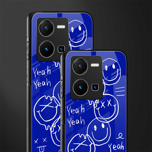 Acid Smiles Yellow Blue Phone Case for Vivo Y35 | Glass Case