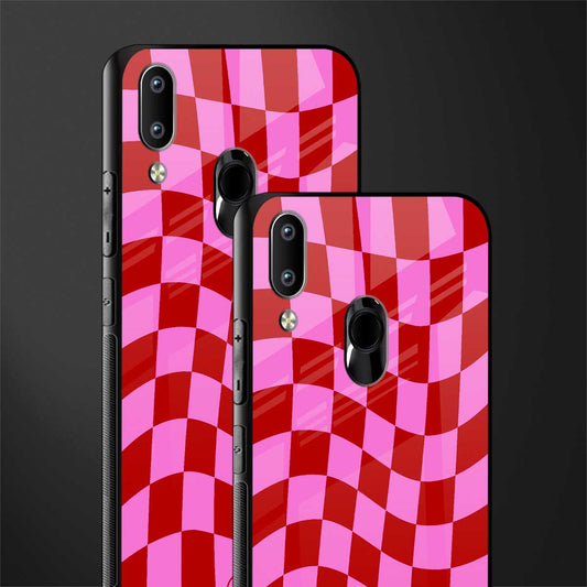 Red Pink Trippy Check Pattern Glass Case for Vivo Y91