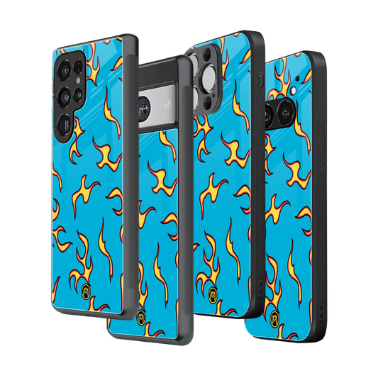 Lil Flames On Blue Phone Cover | Glass Case