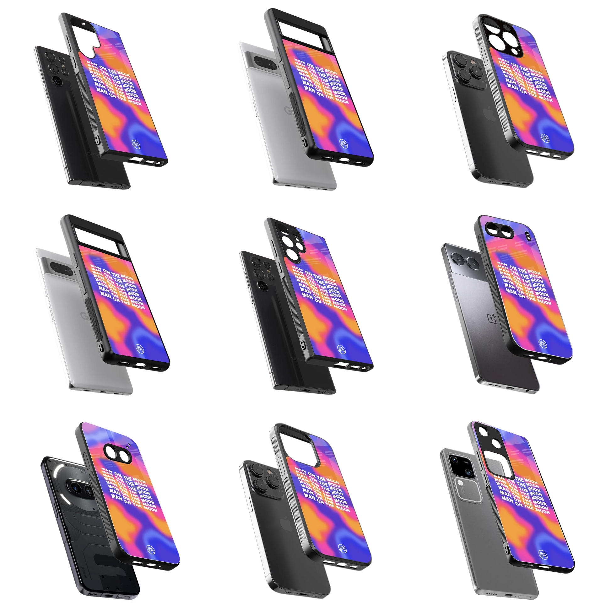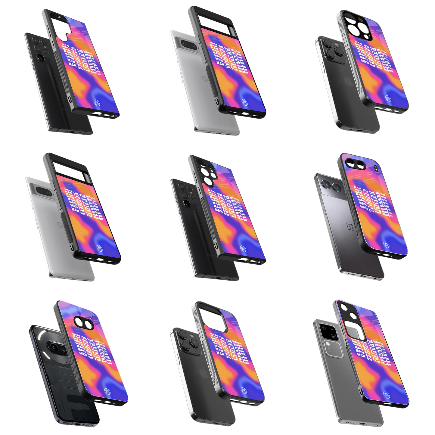 Premium Glass Cases available for Apple, Oneplus, Samsung, Pixel, Xiaomi, Oppo, Vivo, Realme & More Devices.