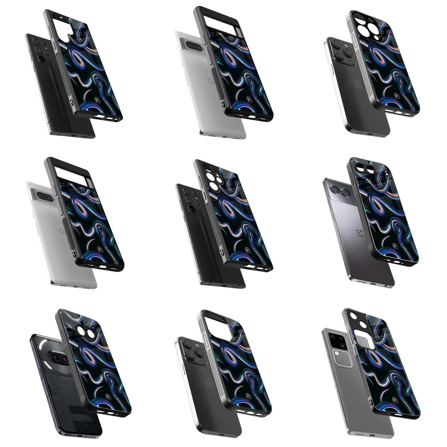 Premium Glass Cases available for Apple, Oneplus, Samsung, Pixel, Xiaomi, Oppo, Vivo, Realme & More Devices.